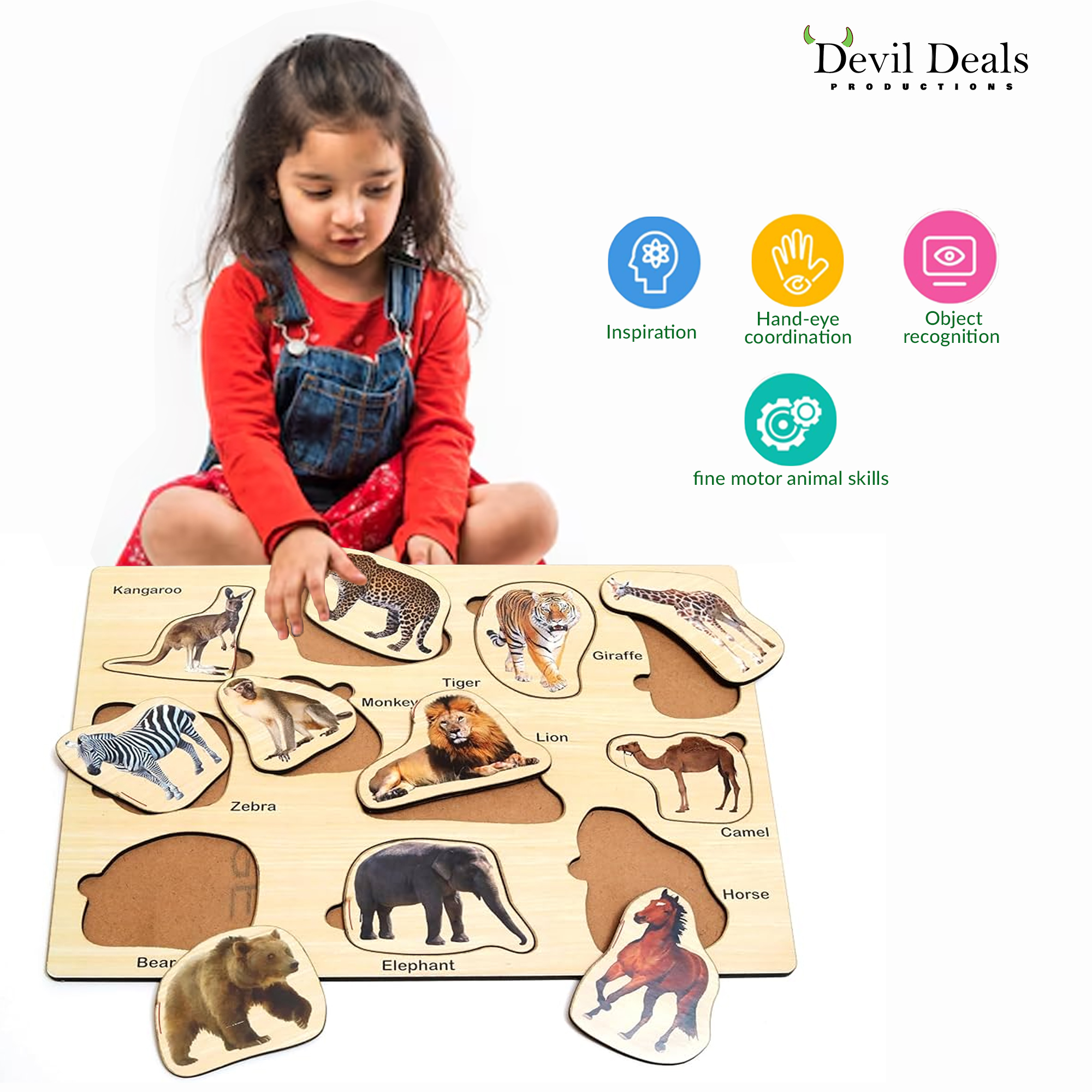 🧩【Premium Materials】- The Animal Wooden Puzzle are made from durable and safe Wooden. This cute puzzle is 10 mm thick and smooth without burrs. Moderate size and suitable for small hands. Beautiful Shapes & Colors printing and long-lasting. The round edges of the board and large jigsaw pieces prevent any unwanted accidents.