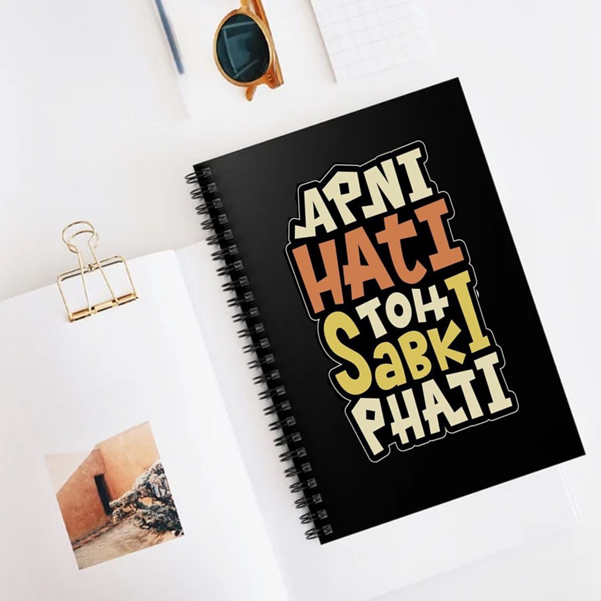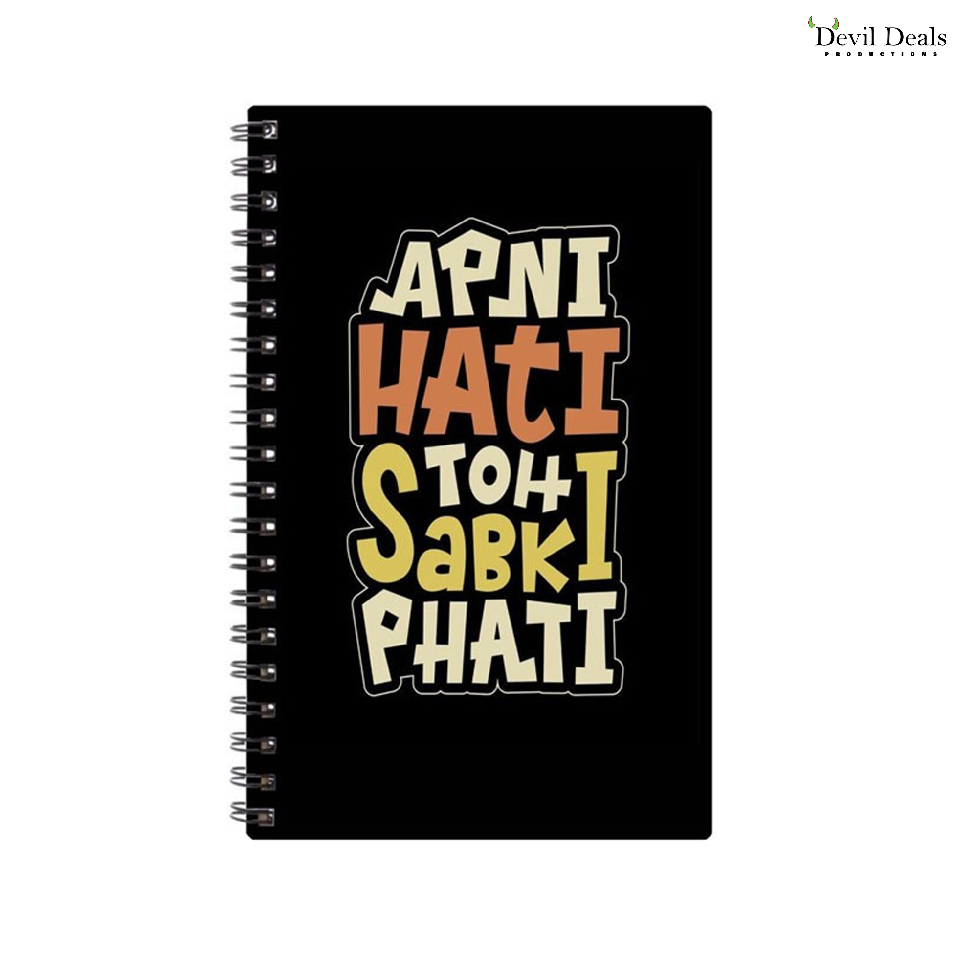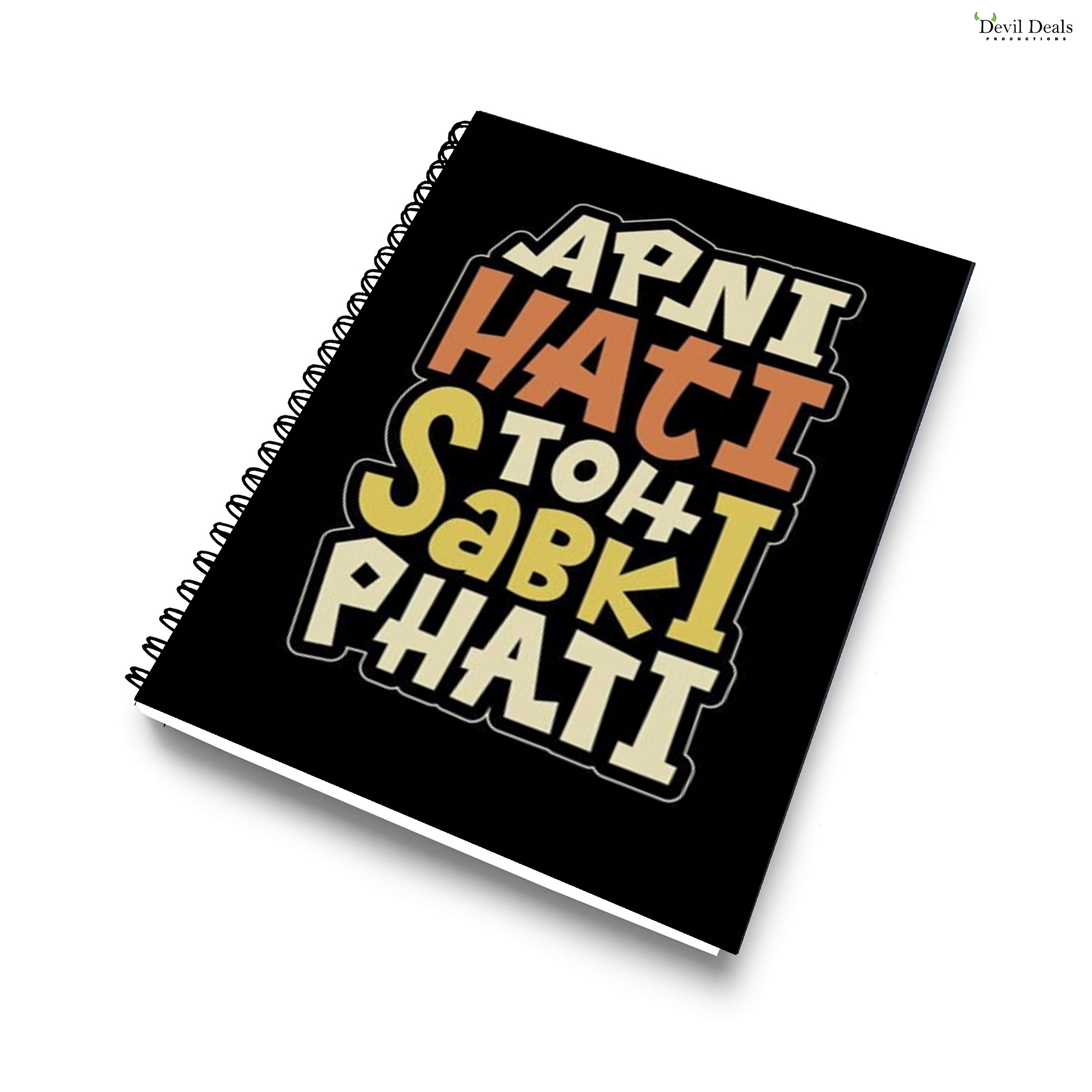Spiral Notebook Diary A5 200 Pages – Apni Hati To Sabki Fati are best for collage and School Students With funny lines and designs on these diaries would woo everyone aroundÂ