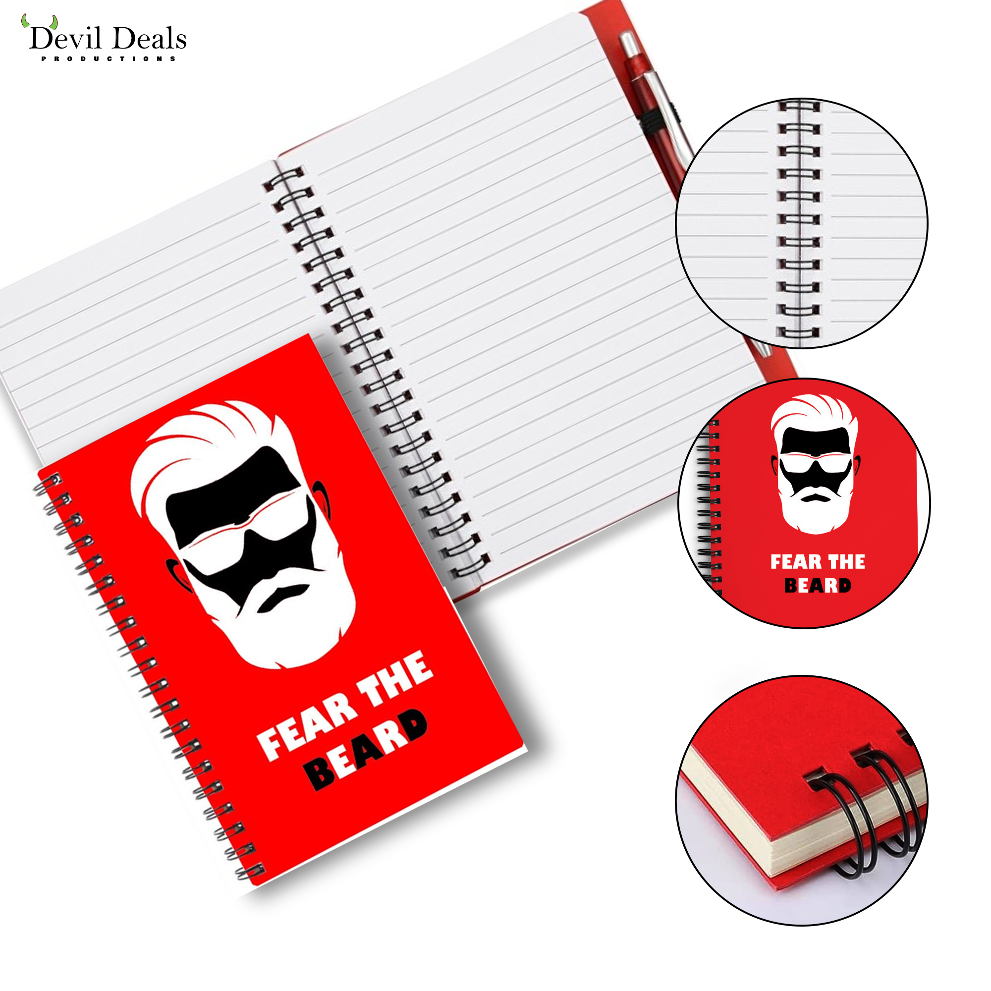 Spiral Notebook Diary A5 200 pages – Fear The Beard Spiral-bound notebooks containing 200 ruled pages. The notebooks are 148 x 210 mm in size A5 Size
