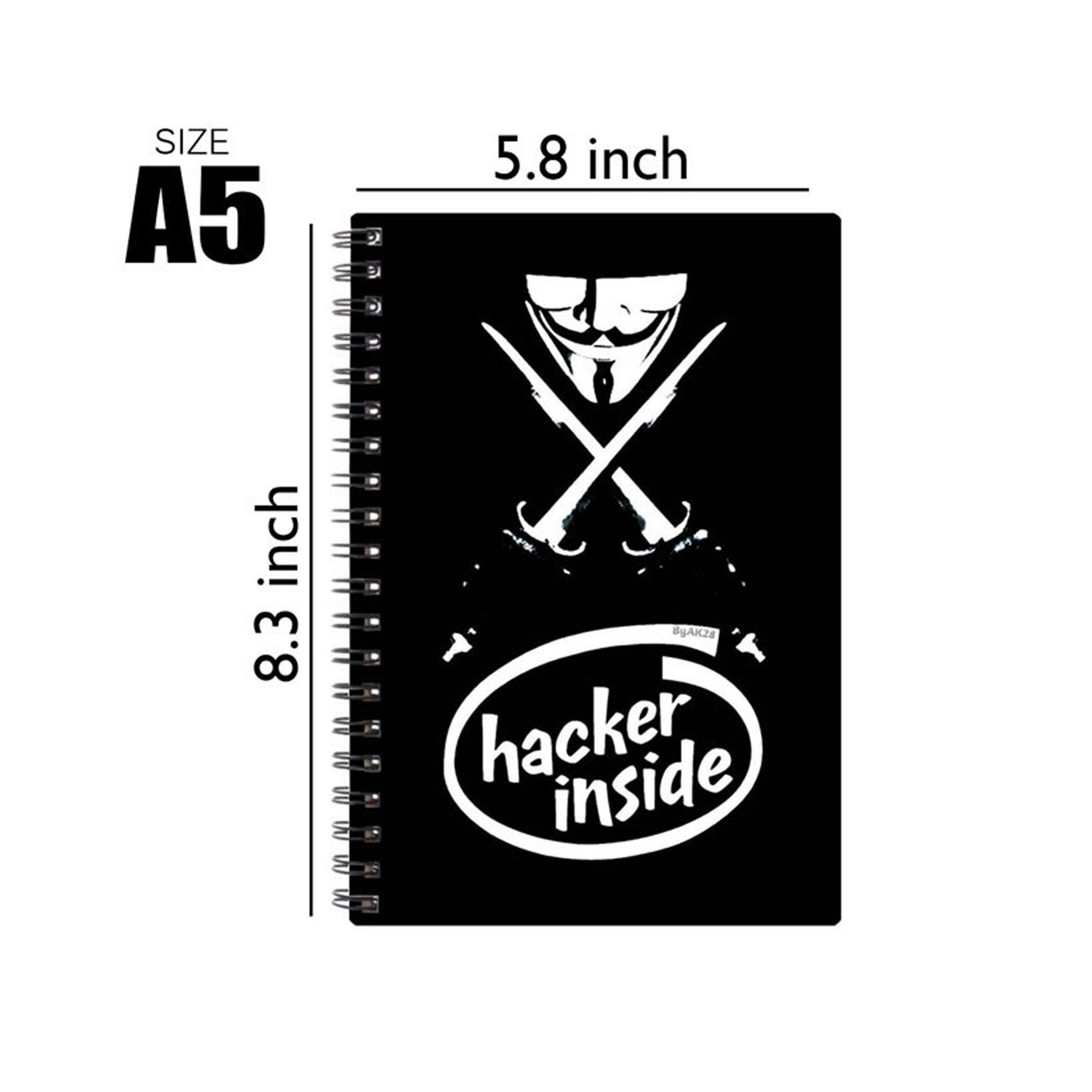 Spiral Notebook Diary A5 200 Pages – Hacker Inside . The notebooks are 148 x 210 mm in size A5 Size