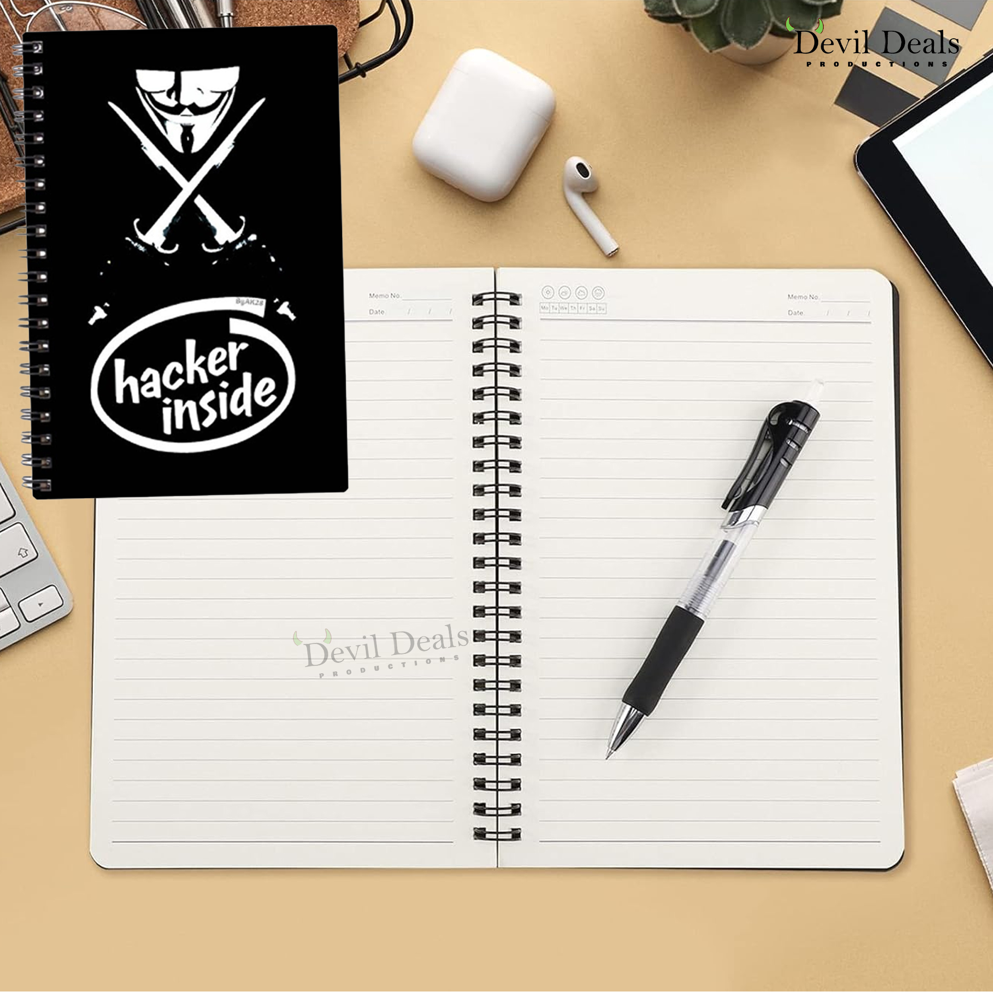 Spiral Notebook Diary A5 200 Pages – Hacker Inside are best for collage and School Students With funny lines and designs on these diaries would woo everyone around