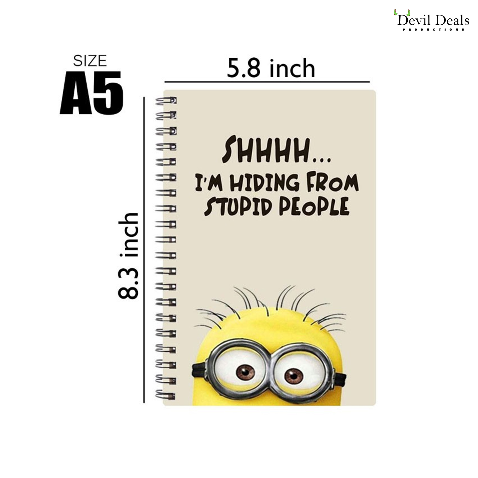 Spiral Notebook Diary A5 200 Pages – I’m Hiding From Stupid People are best for collage and School Students With funny lines and designs on these diaries would woo everyone around