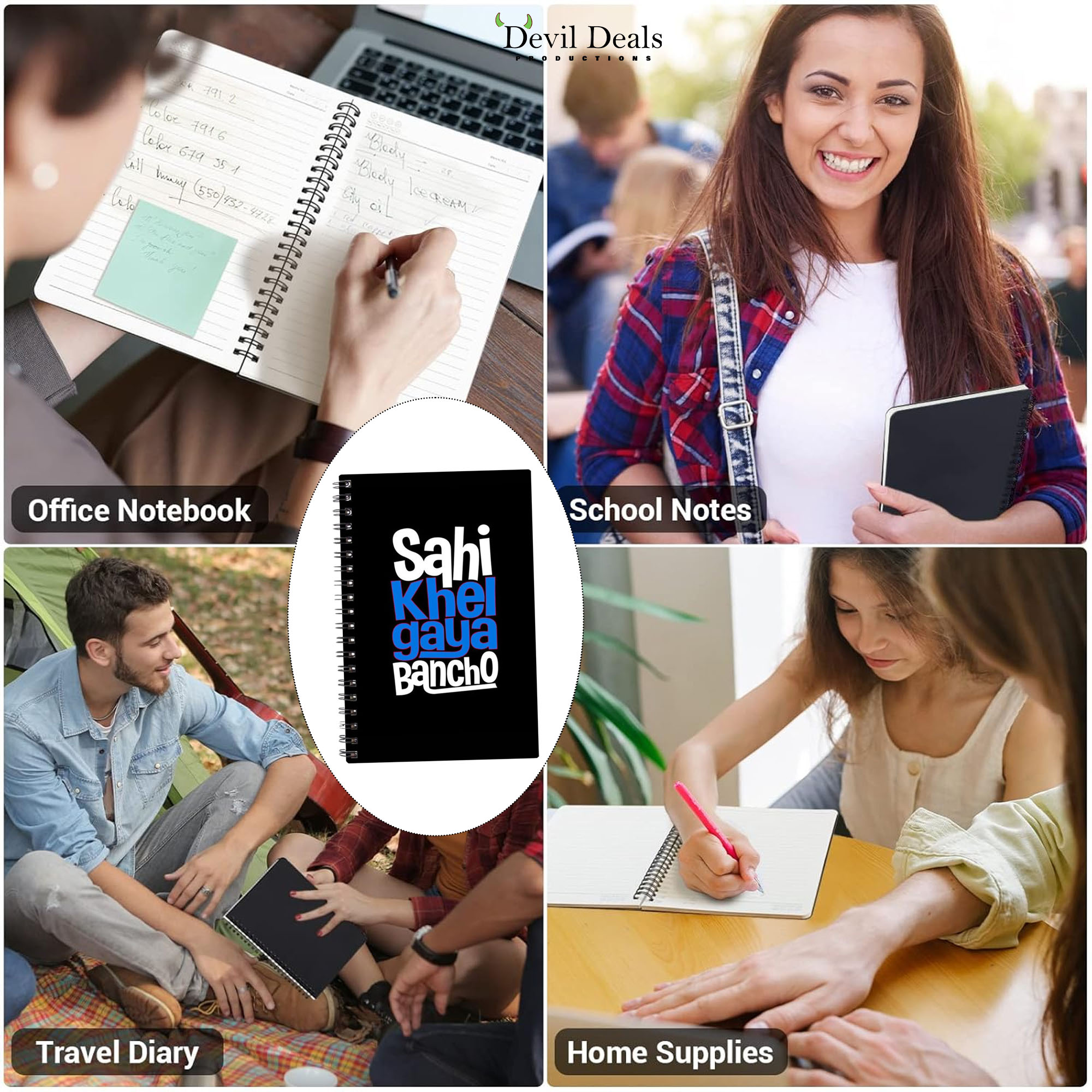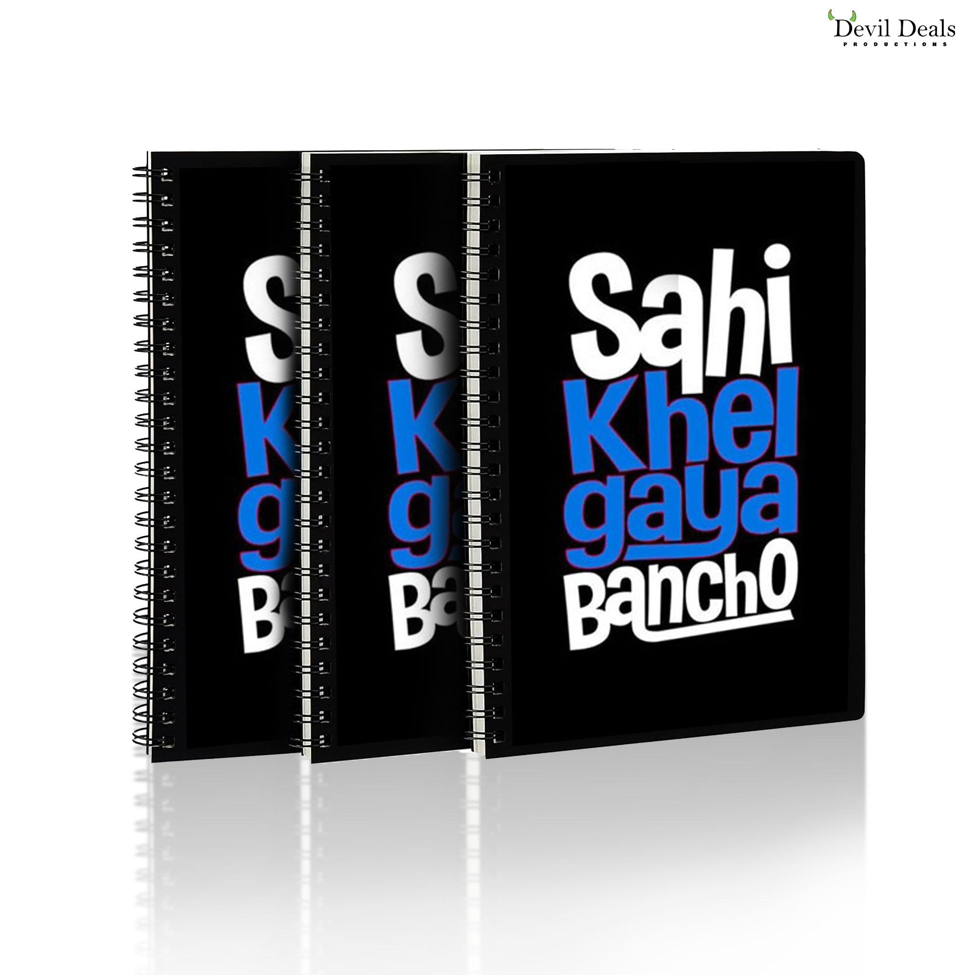 Spiral Notebook Diary A5 200 Pages – Sahi Khel Gaya Bancho  are best for collage and School Students With funny lines and designs on these diaries would woo everyone around