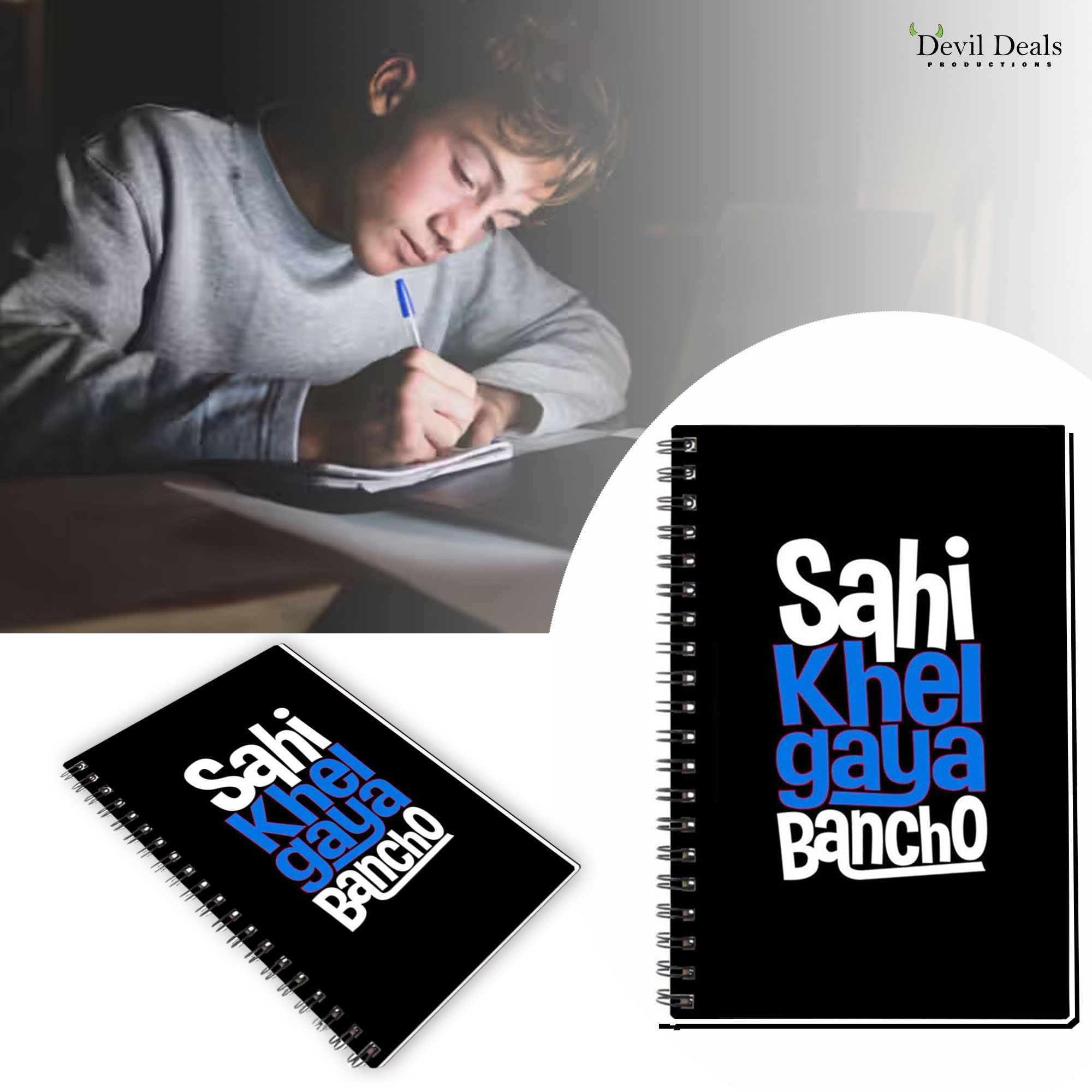 Spiral Notebook Diary A5 200 Pages – Sahi Khel Gaya Bancho. The notebooks are 148 x 210 mm in size A5 Size