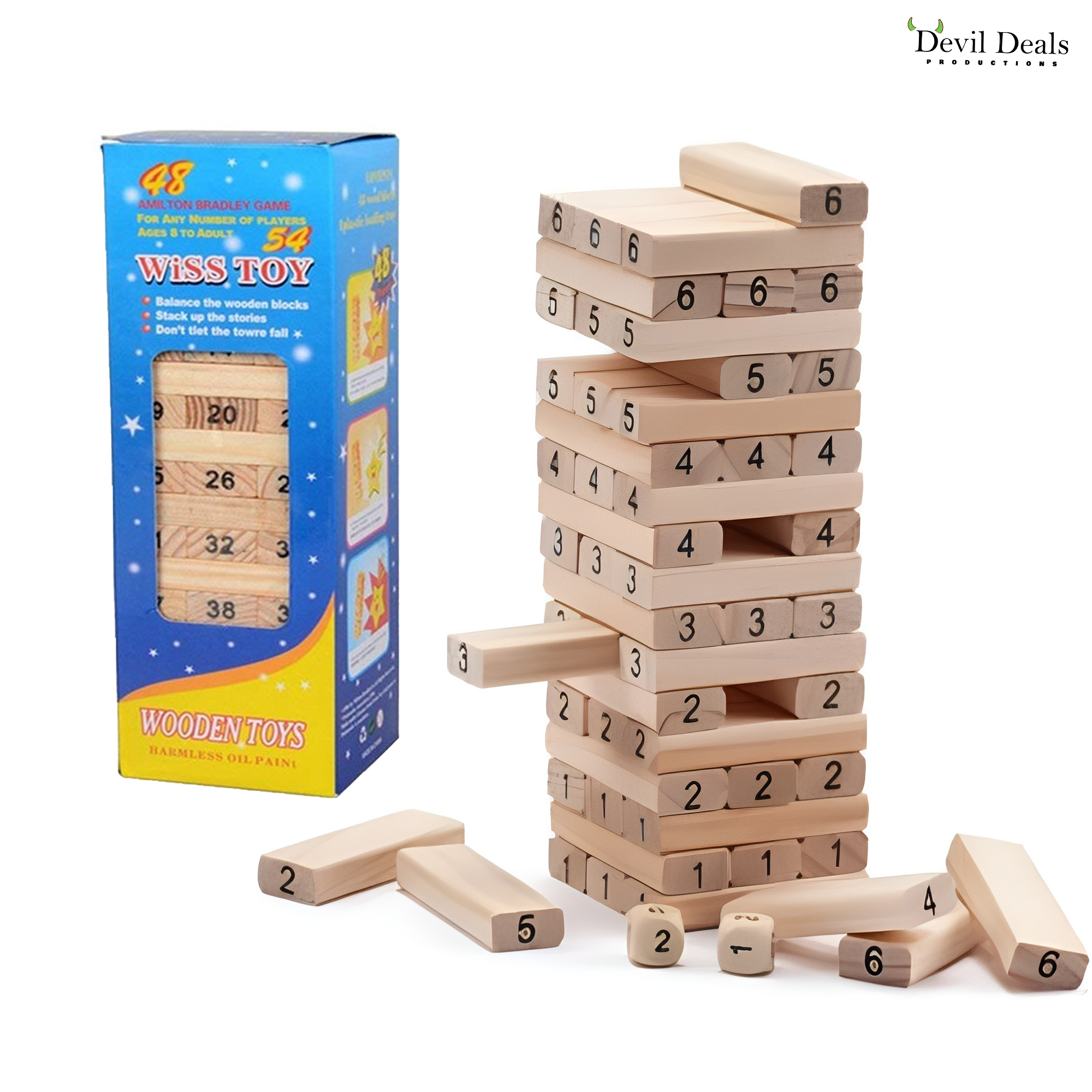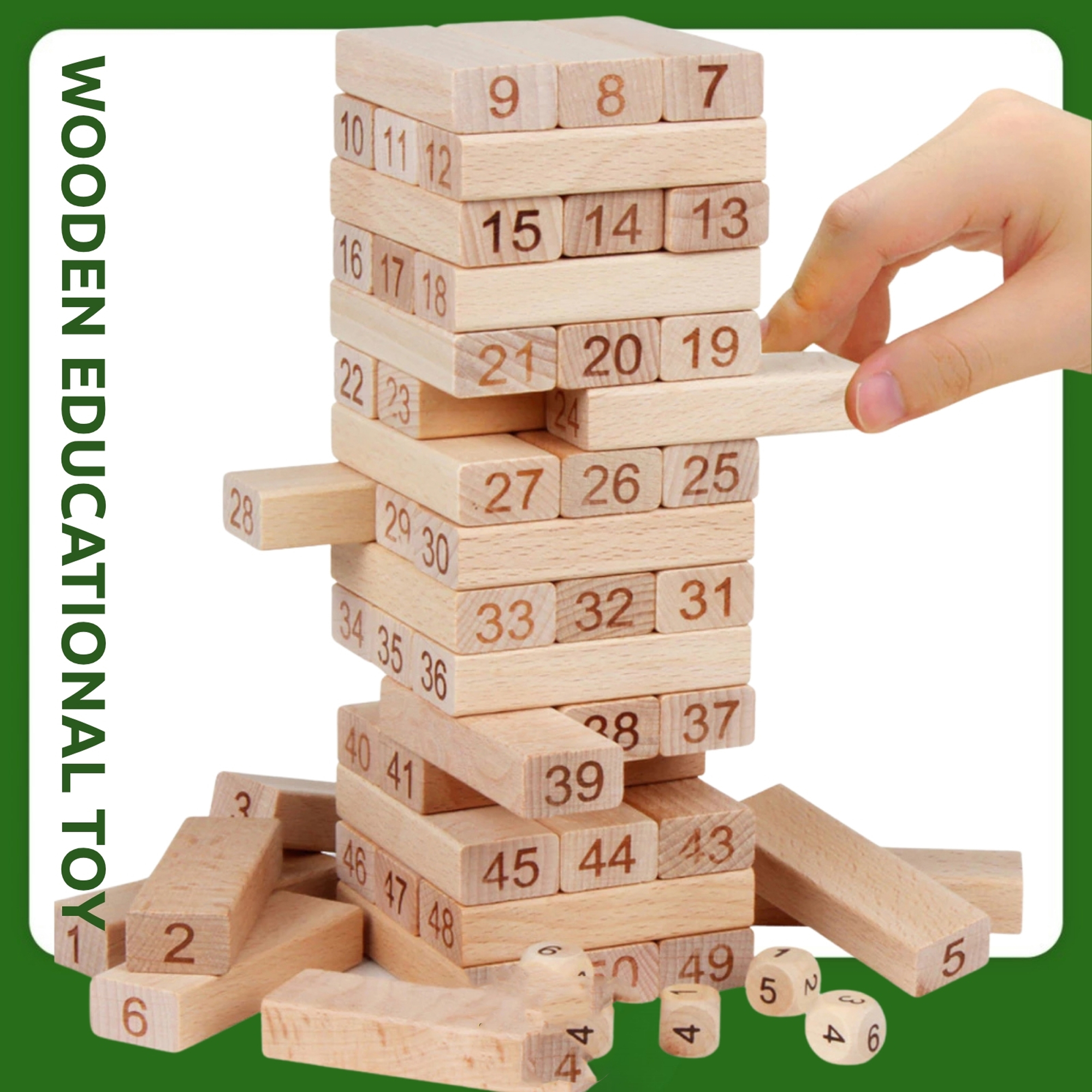 Wooden Block Puzzle 51 Wooden building High Quality Blocks with 4 Dice for playing